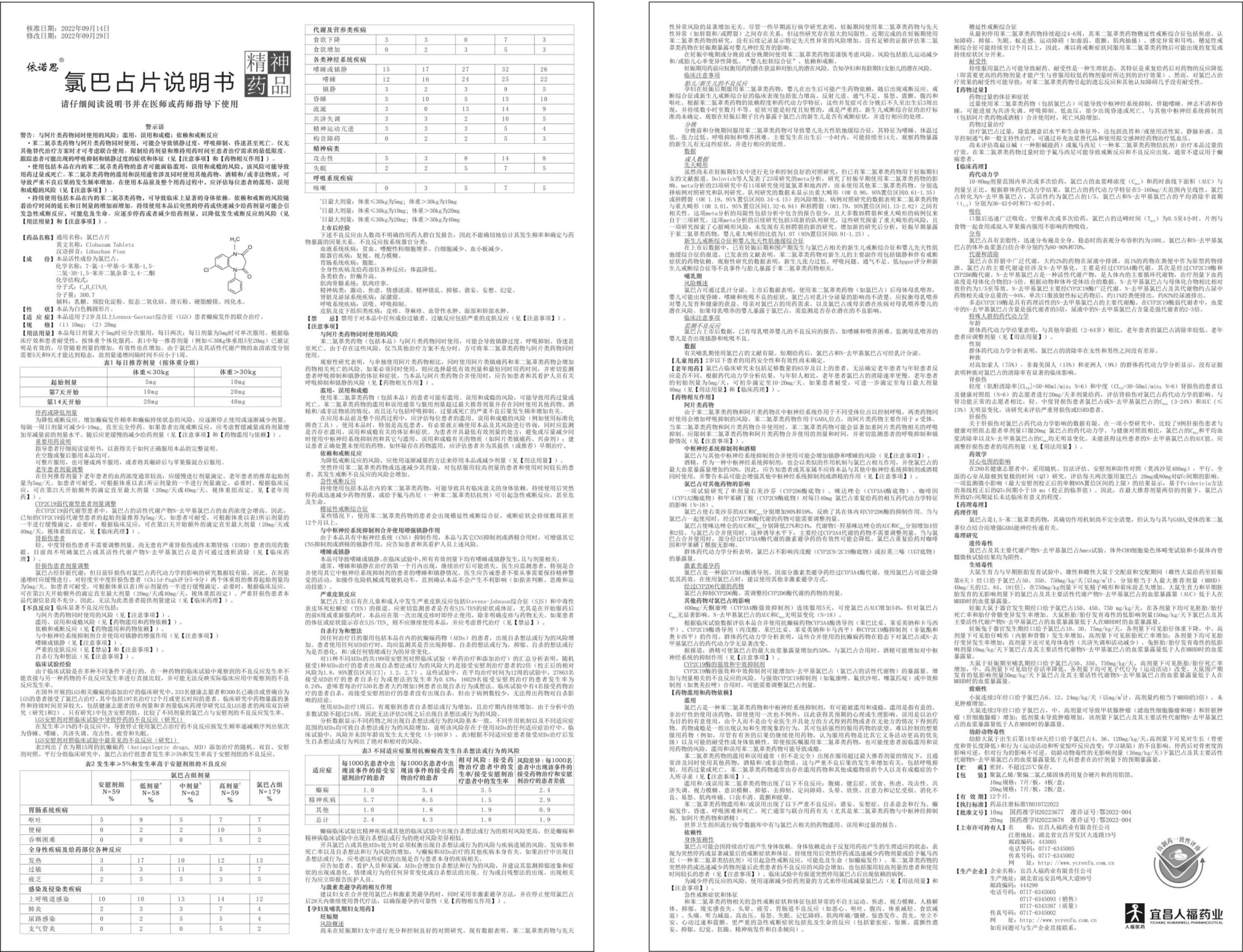 依诺思®氯巴占片